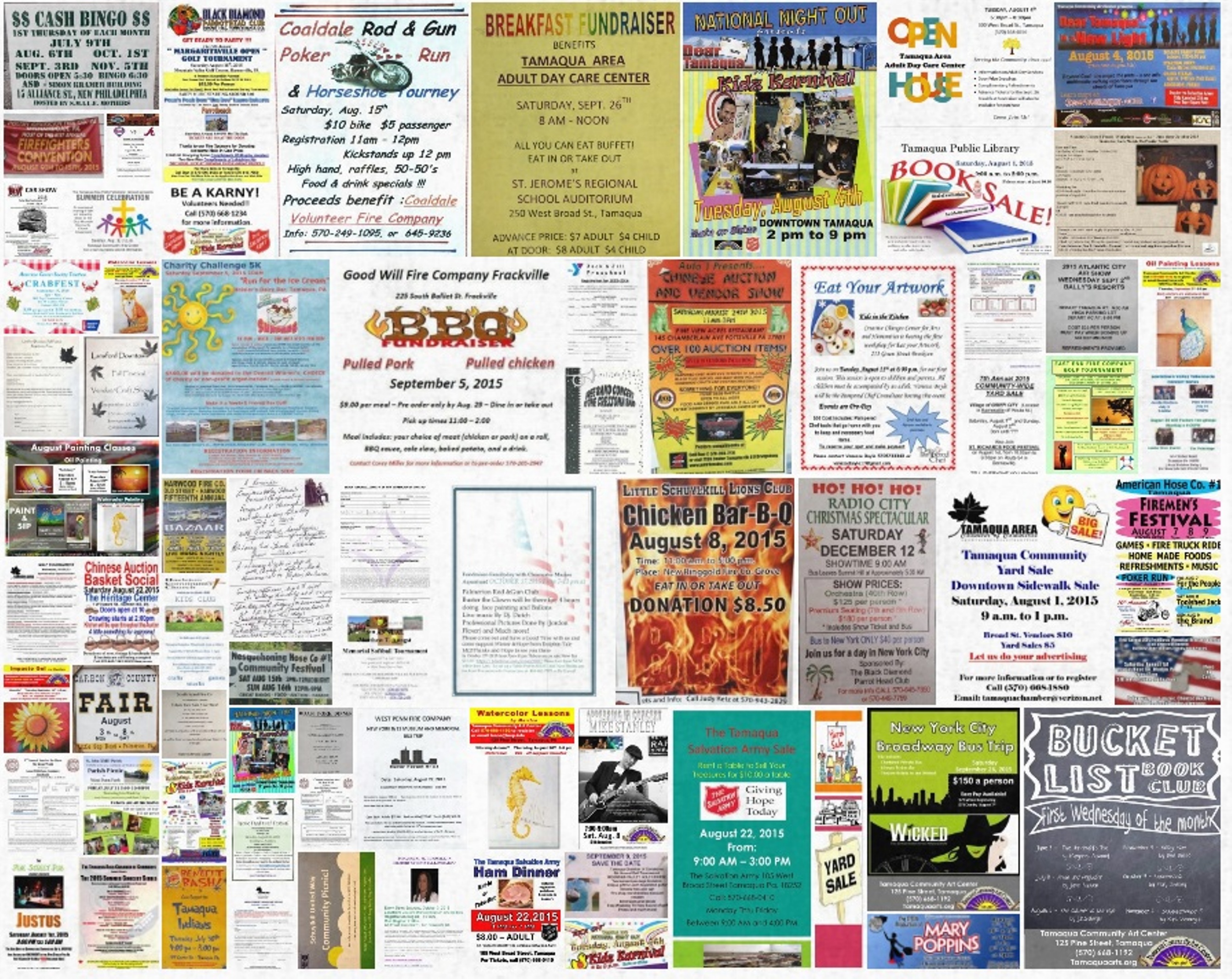 Below is a list of 70 submitted or acquired event posters for Tamaqua and surrounding communities.