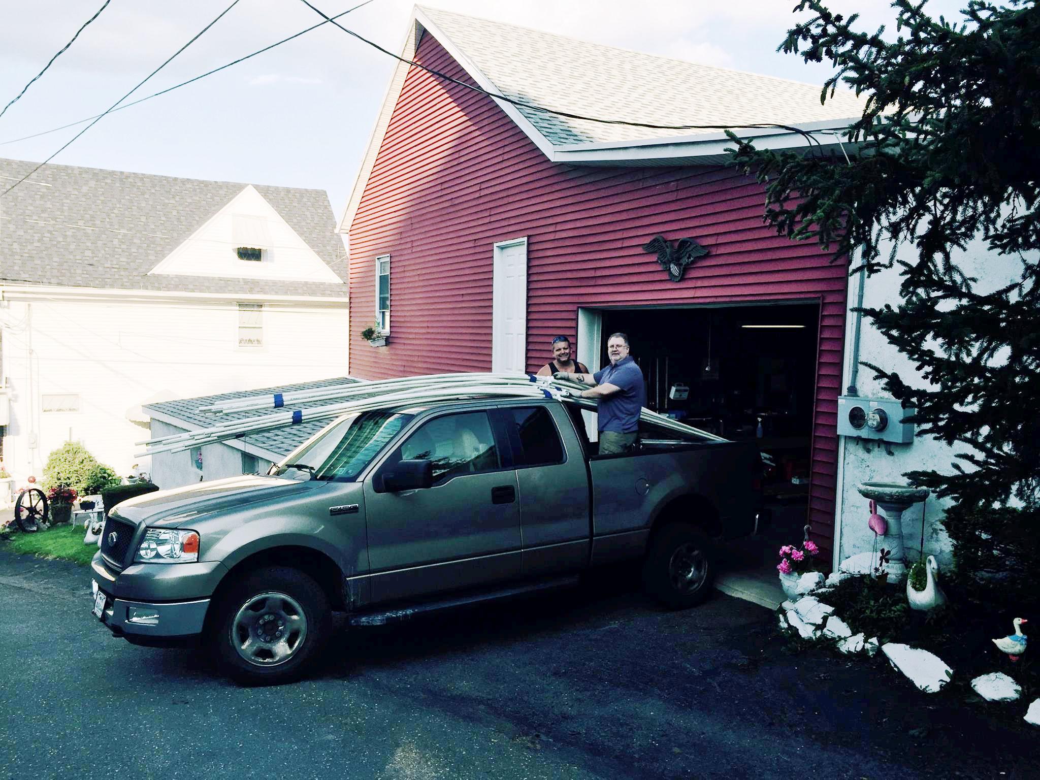 Pictured recently are volunteers transporting materials in preparation for August 4th’s ‘Dear Tamaqua… In A New Light’ community event titled ‘Beyond Coal: the angst, the pride – a one mile multimedia walking experience through the streets of Tamaqua’.