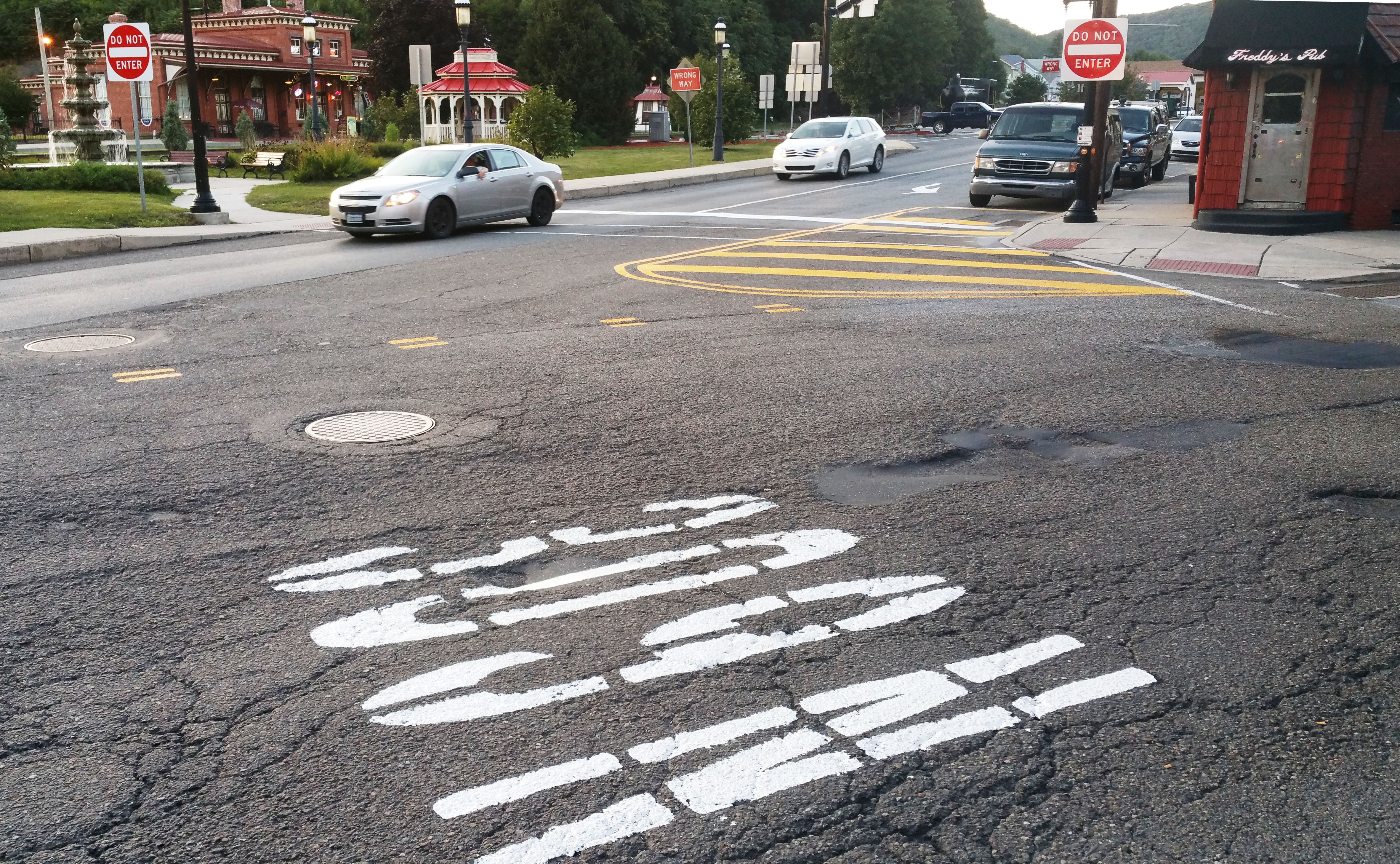 – Painting crosshatch lines and “309 NORTH” (with an arrow) on the road at the corner of North Railroad and Mauch Chunk streets.