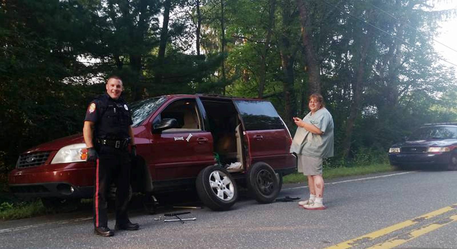 I happen to be the one he helped. And let me tell you this fine police officer went above and beyond to help me. He not only changed my tire for me but he also called a friend to put air in my tire that he put on and because my four ways were on the whole time which killed my battery he also had same friend jump start my van. So for that I am deeply grateful to both of them. Oh the officer also followed me half way home to make sure I was safe. Thank you once again for going above and beyond your call of duty. 😊.