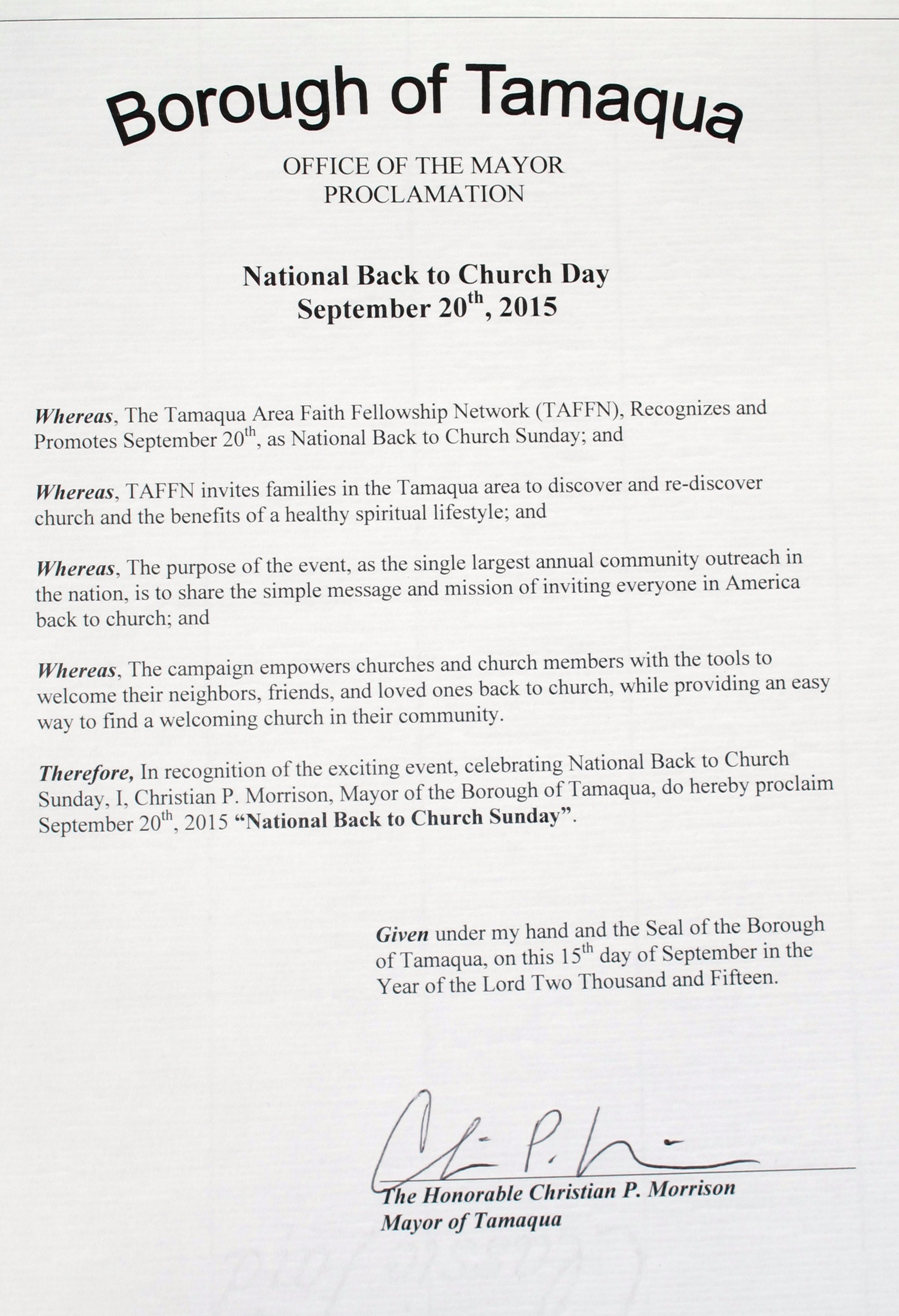 Times News story: http://www.tnonline.com/2015/sep/16/back-church-sunday-promoted