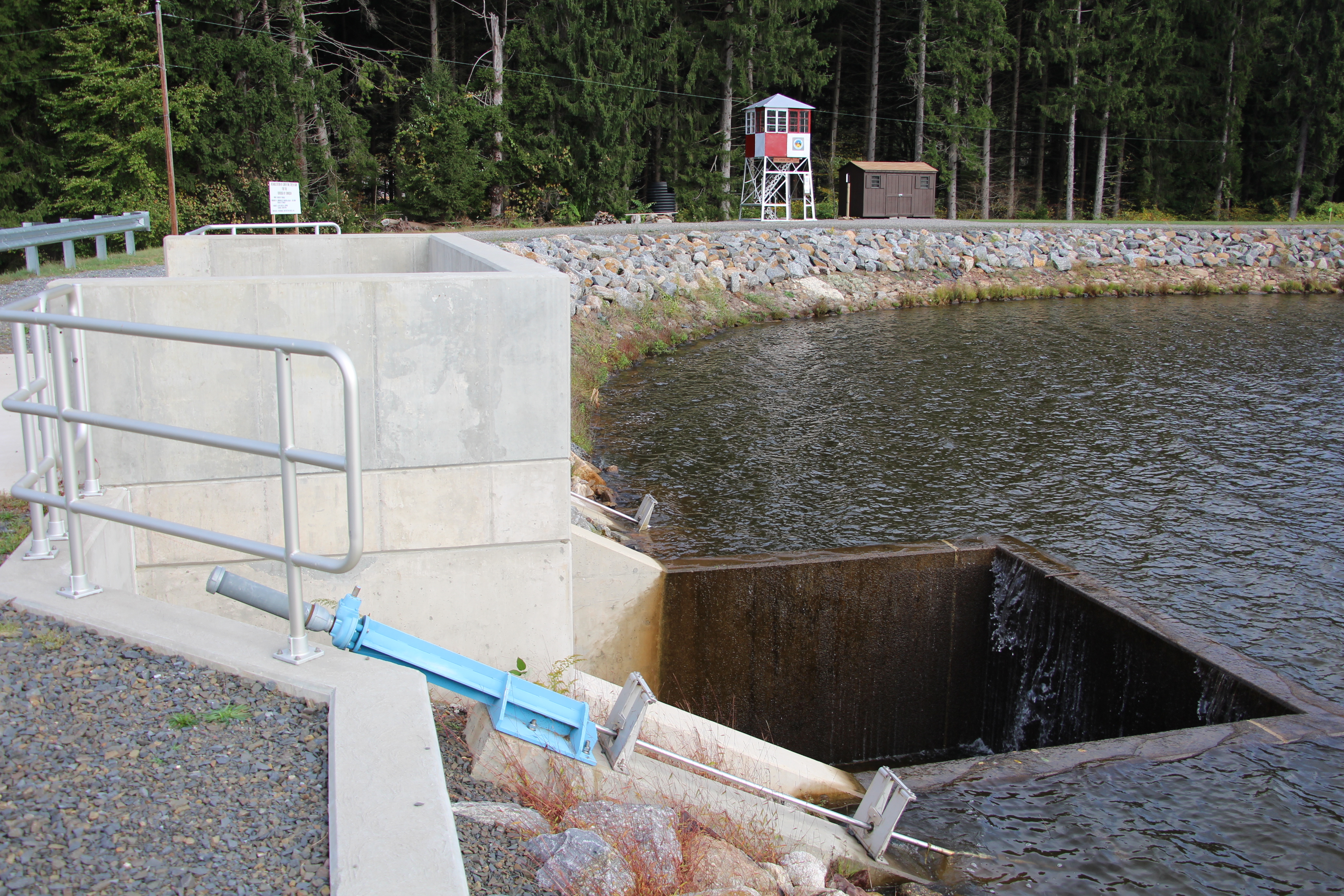 Recent windy weather made for interesting whistling noises and small waves at the Lower Owl Creek Dam. The whistles could be heard near the new spillway as winds pass through it and its guardrails.