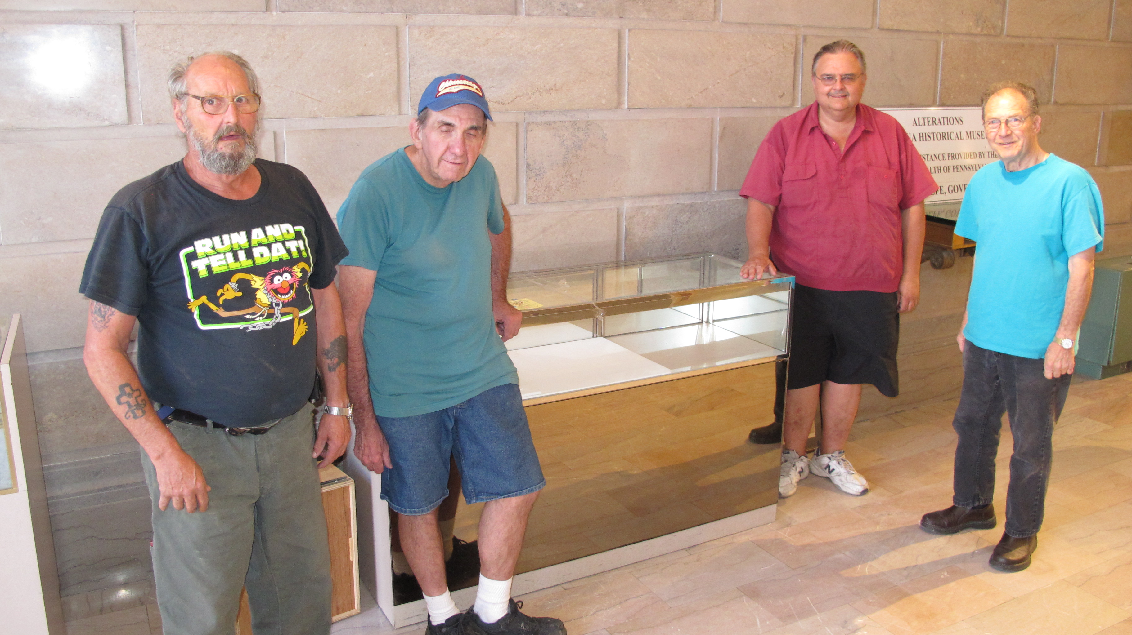 Pictured are volunteers helping to move display cases to and from the Tamaqua Historical Society Museum. Over the past few months, volunteers have spent time locating quality display cases to replace older cases that were in disrepair. This included multiple truck loads to and from Blums Auction in Frackville and other used furniture stores.