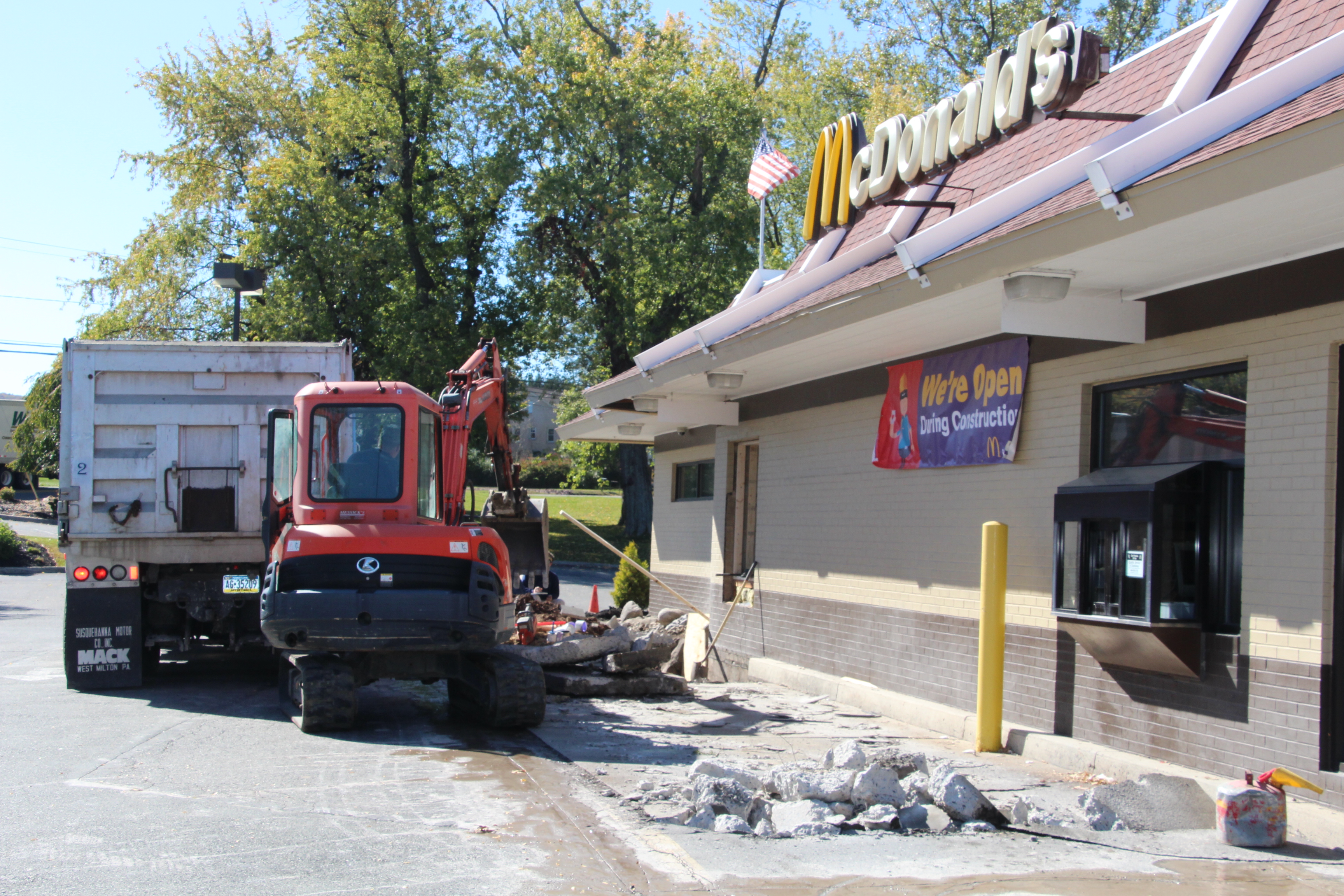Pictured right now are workers with General Contracting Management Inc. constructing a double drive thru at the McDonald’s restaurant in Hometown. They are also improving handicap parking at the location. Work started last week and is expected to be complete in the next week or so.