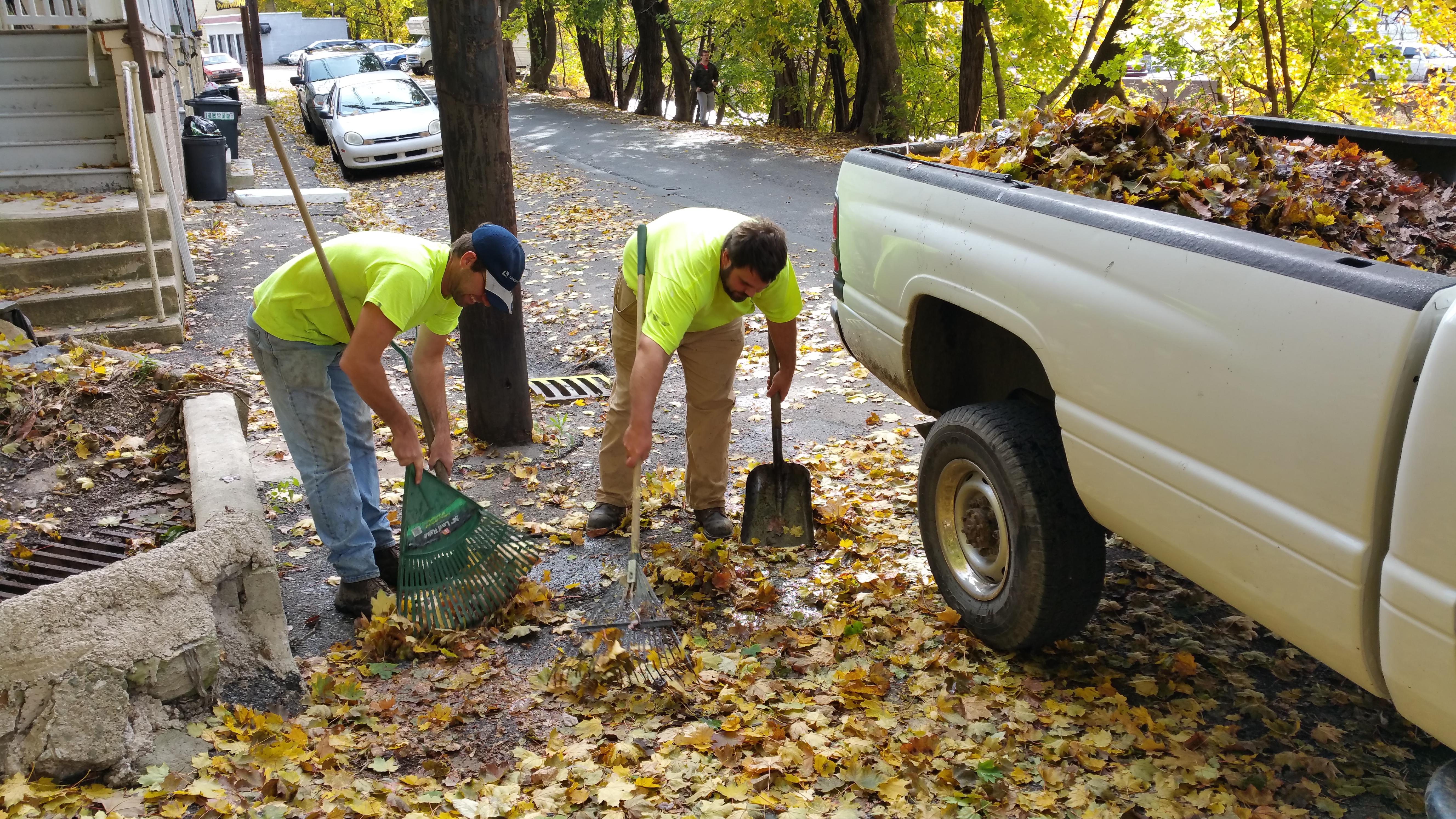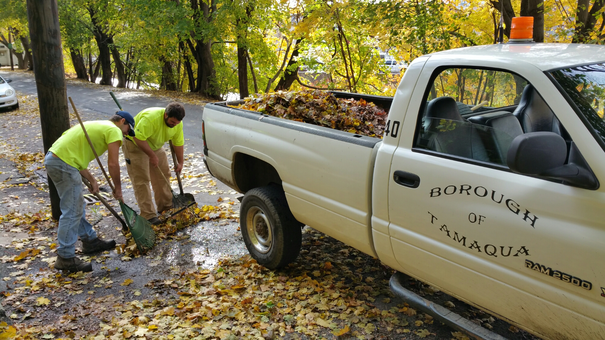 Pictured right now are Tamaqua Borough workers Mark Leiby and Aaron Coggiano clearing leaves from storm drains along Schuylkill Avenue in Tamaqua.