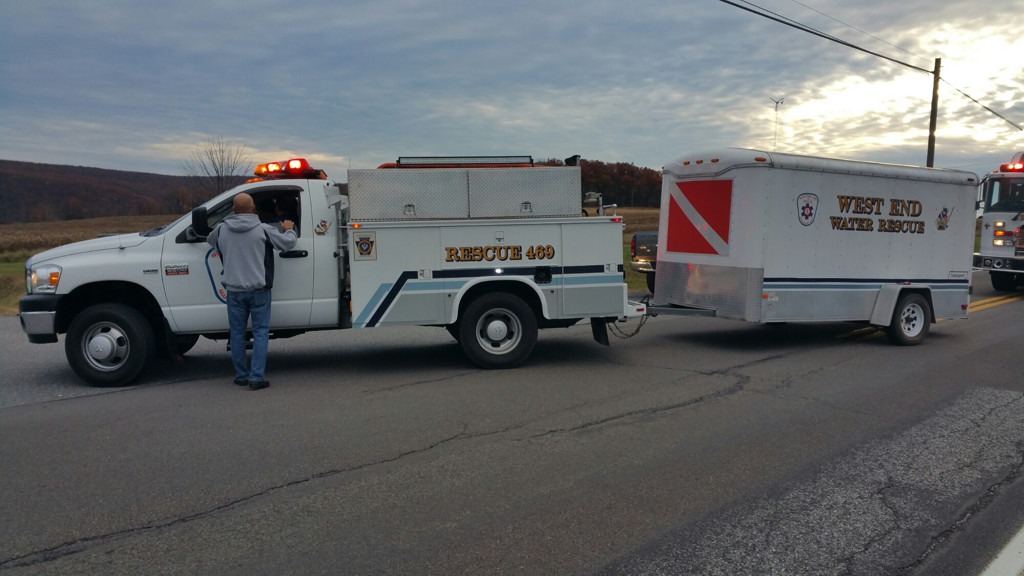 Emergency crews are staging right now at the loading dock of Tuscarora State Park in Barnesville for a possible water rescue. They were dispatched around 4:45 PM after an overturned rental paddleboat was found on the water near the breach of the dam.