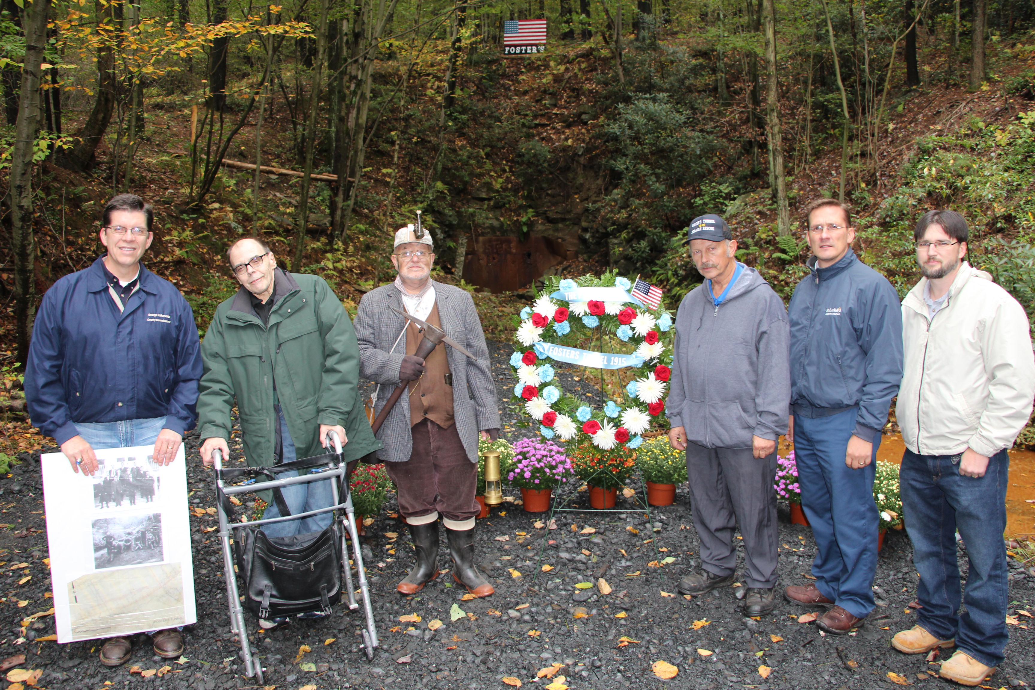 A ceremony was held October 3, 2015 in Coaldale to recognize the 100th year anniversary of the Foster’s Mine Tunnel cave-in and rescue that entombed 11 miners in the mine after a large body of water broke into the mine and trapped the men for seven days. The cave-in occurred on Monday, September 27, 1915. Two miners were rescued on the second day, while the rest of the men were rescued 7 days later, on Sunday, October 3, 1915.