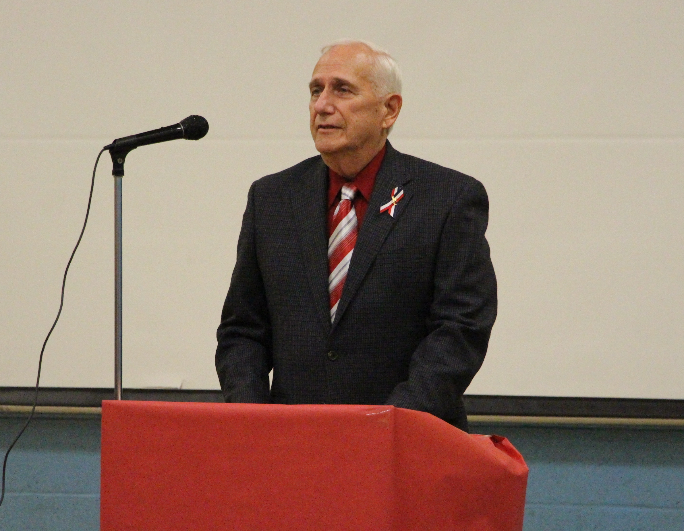 Guest speaker Joe Deren spoke about his experiences while in service. Deren retired last year as the school’s custodian.