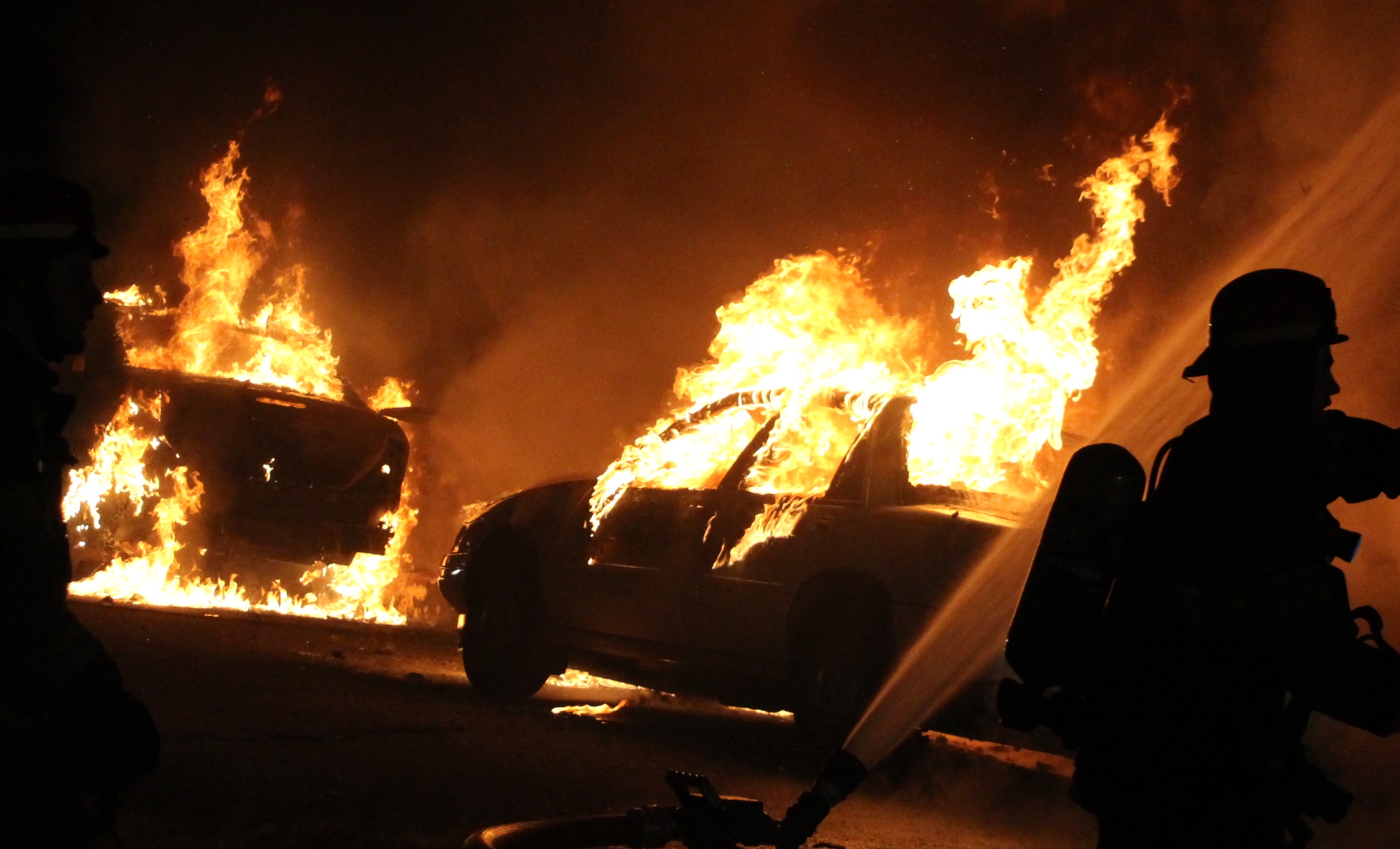 Row Home Fire, Blaze, 100 Block of Orwigsburg Street, Tamaqua, 11-21-2015 (5) - CopyTwo vehicles parked on Orwigsburg Street were also destroyed by the fire. Of which, one was owned by Brozyno and the other by Oliver.