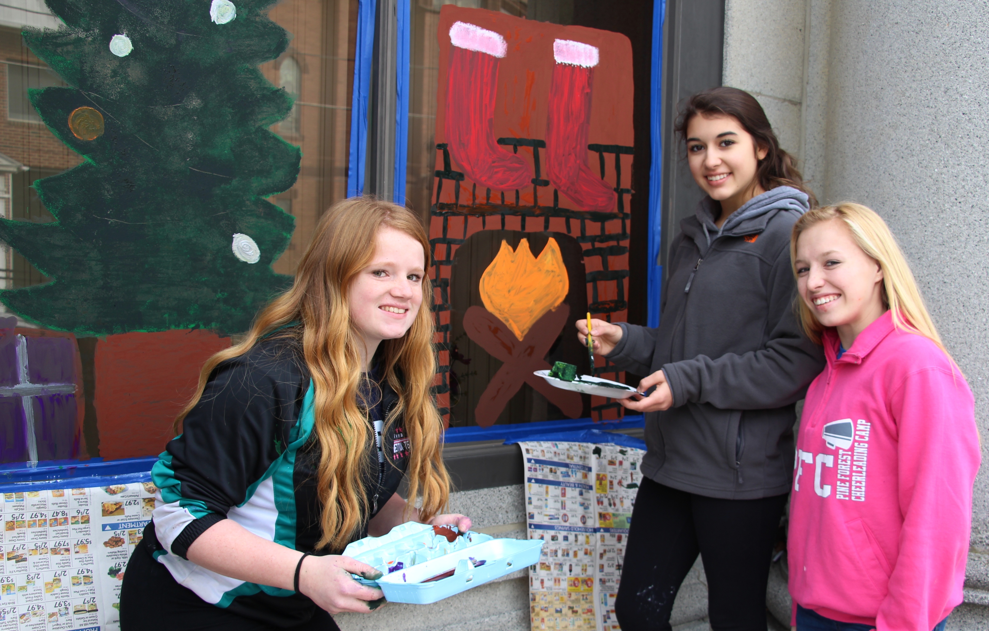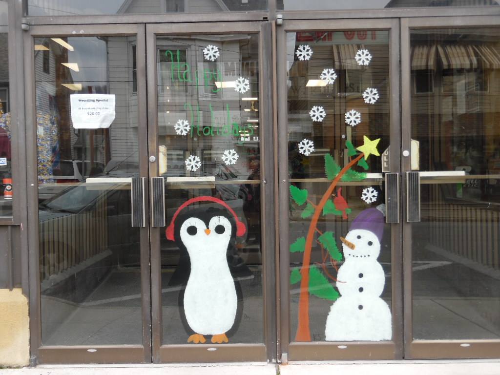 28 students with Kim Burkett’s Panther Valley High School Art Class spent much of Friday morning painting 32 Lansford storefronts as part of Lansford Alive’s Holiday Storefront Project.