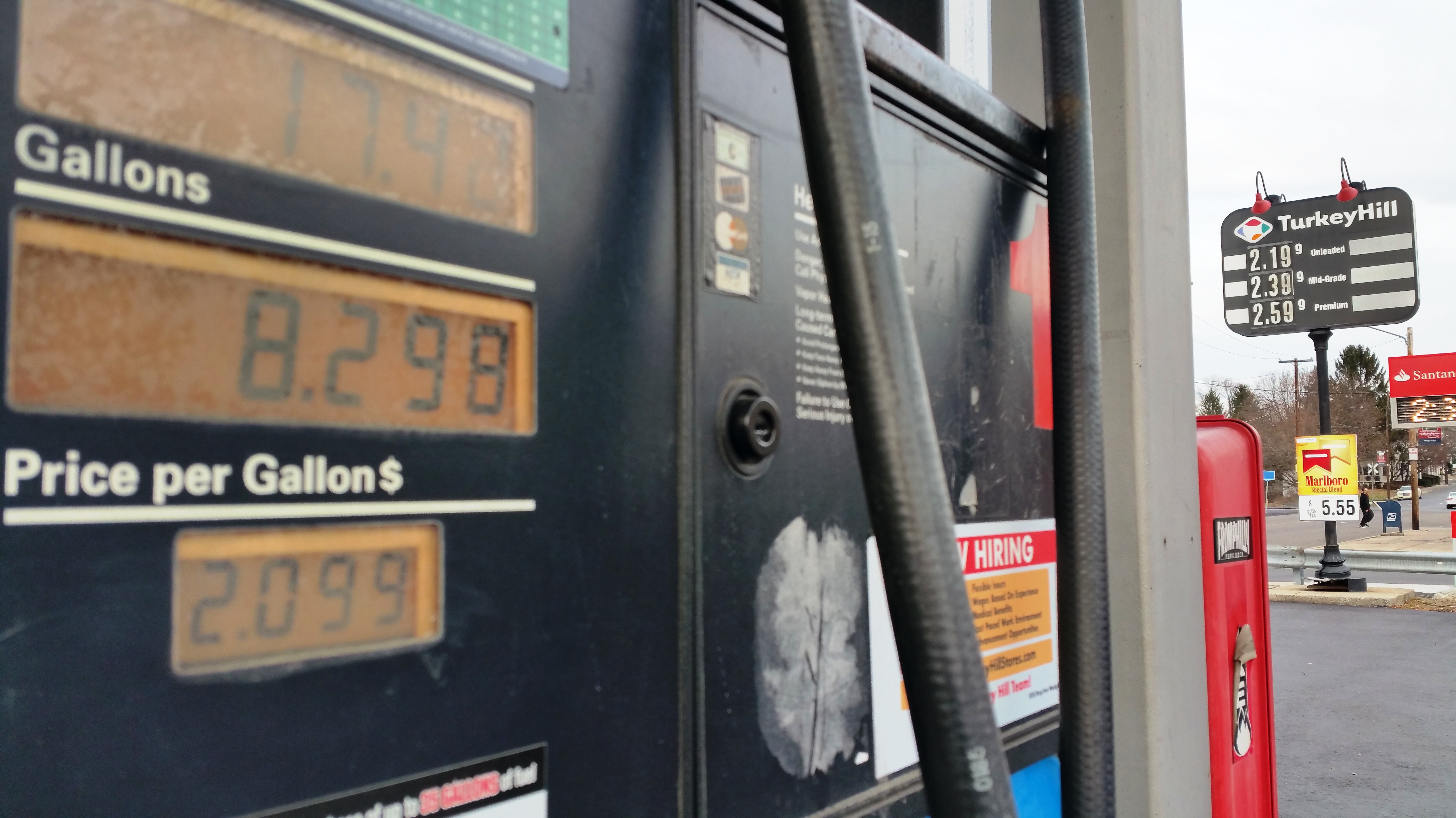 According to FuelGaugeReport.com, today’s national average is $2.013 a gallon for regular gas. It adds that today’s average for Pennsylvania is $2.229, versus $2.771 a year ago. The highest recorded average price in the state for regular gas was $4.074 on July 16, 2008.