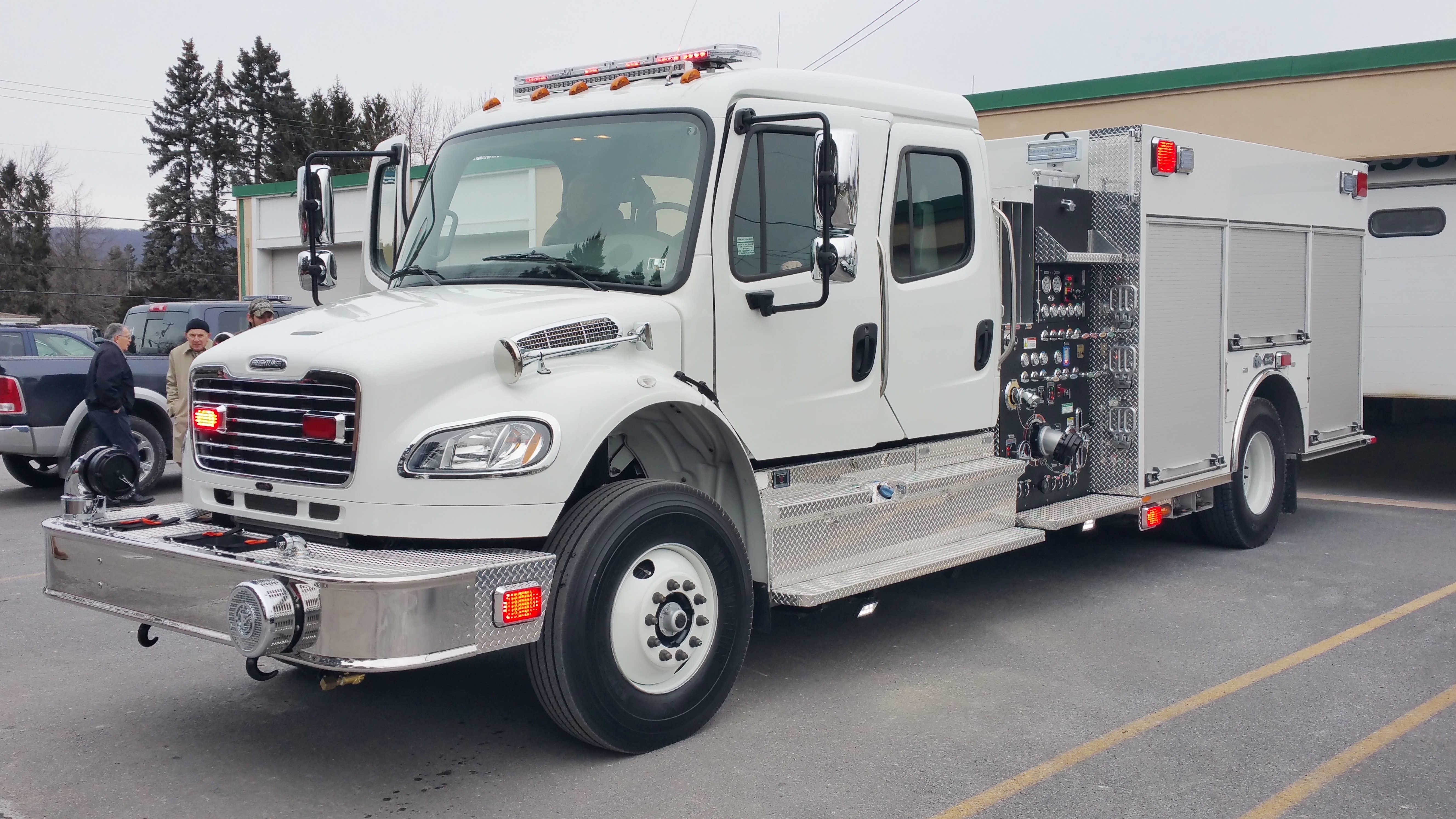 The new pumper/rescue firetruck, which cost about $325k, replaces their 1997 Freightliner truck and can pump water at 1,500 gallons a minutes.