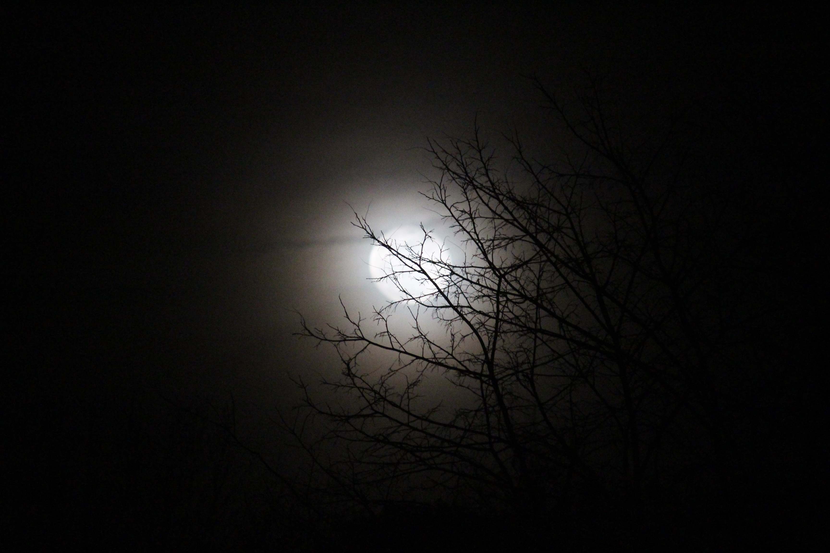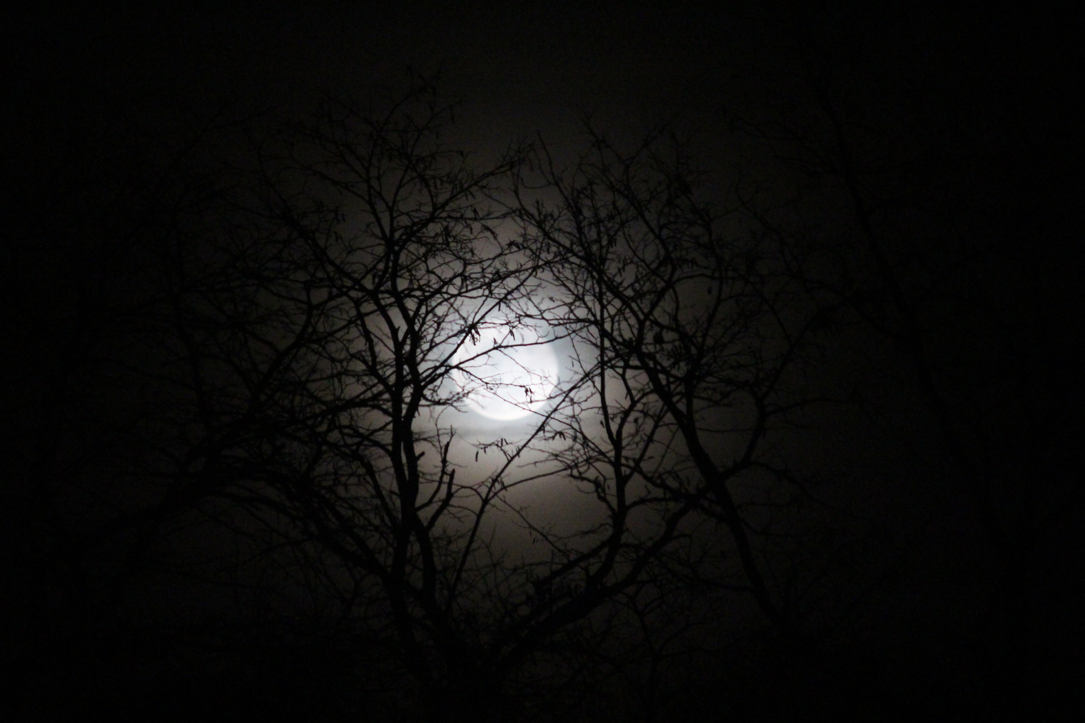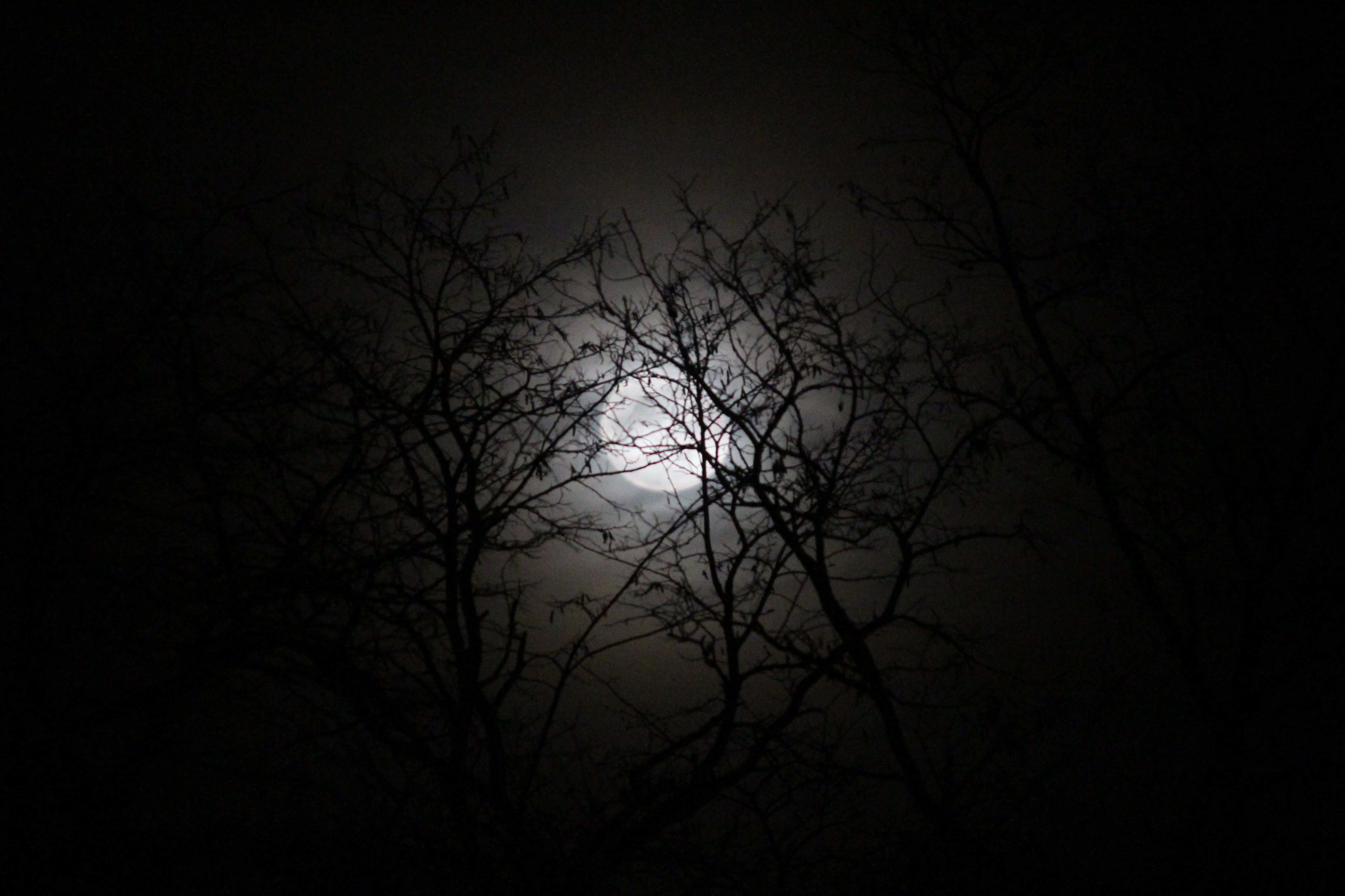 Pictured are a few photos I took tonight of an apparent full moon through the trees.
