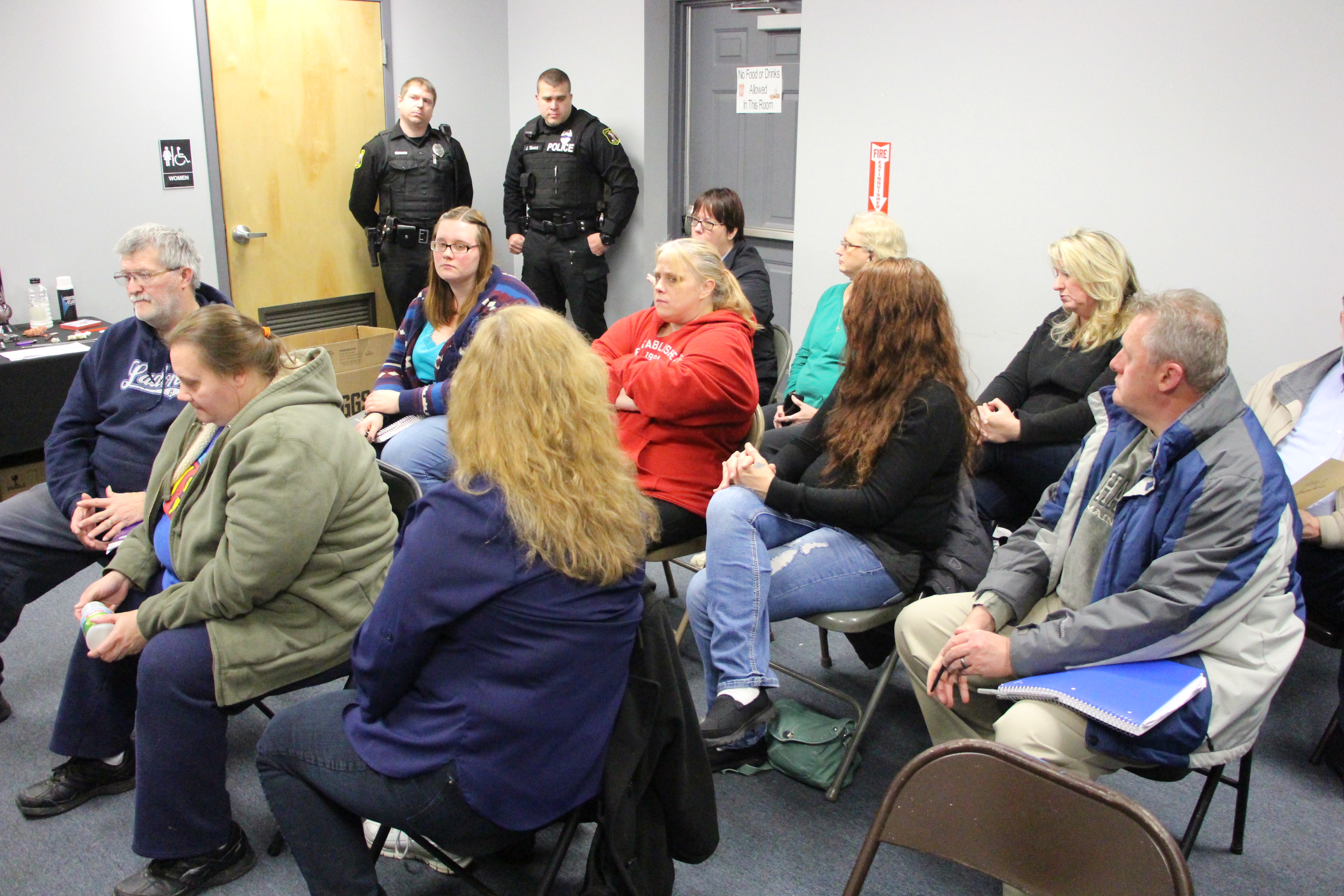 Tamaqua Police officers Mike Hobbs, a 16-year veteran of the force, and Jeremy Sborz, a 2-year veteran, were on-hand this evening talking to members and visitors of Safer Streets for Tamaqua’s Little Feet (SSfTLF) group. Discussions during their monthly monthly meeting involved drug addiction support, family/loved-one’s understanding and identification, as well as available long-term recovery methods.