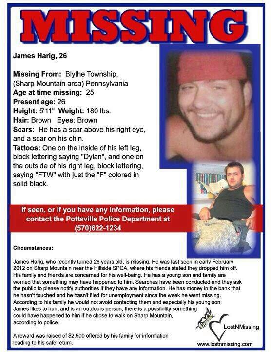 http://www.websleuths.com/forums/showthread.php?228693-PA-James-Harig-26-Pottsville-5-Feb-2012