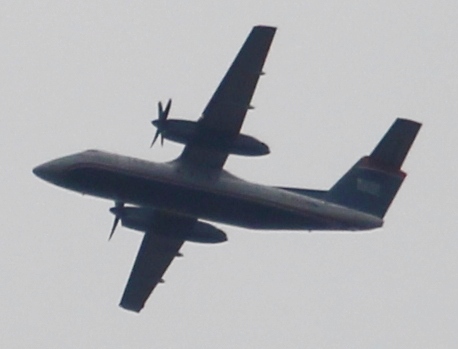 RANDOM PHOTO: Pictured are a few photos of a U.S. Airways Express Boehing DHC-8-102 (Dash 8) propeller airliner flying south over Hometown around 3:25 p.m. on Sunday.