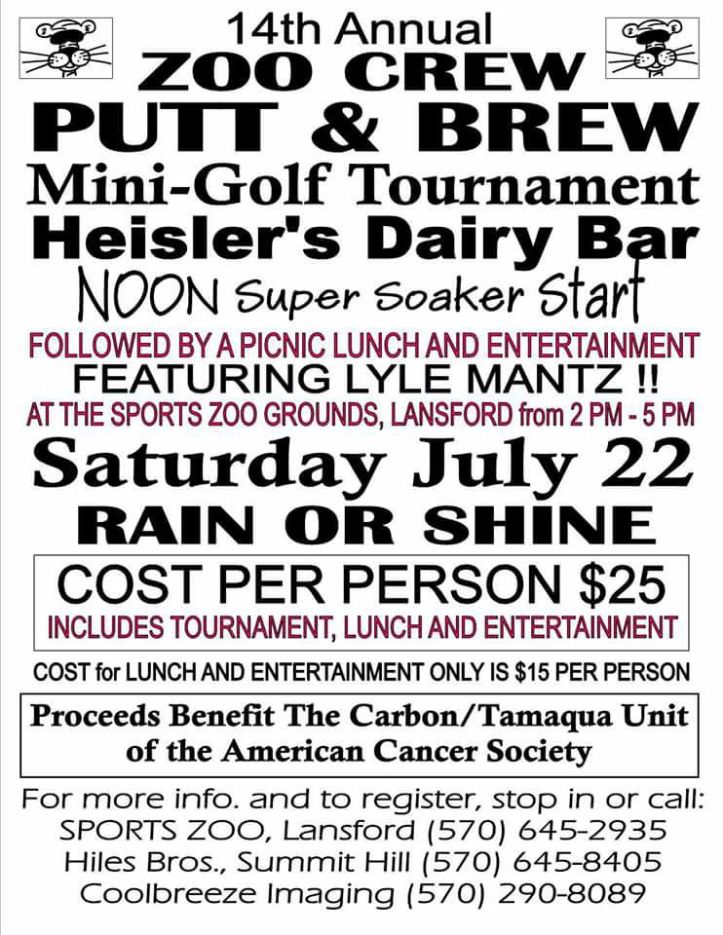 7-22-2017, Zoo Crew Putt & Brew Mini Golf Tournament, Heisler’s Dairy Bar, Lewistown Valley, Tamaqua