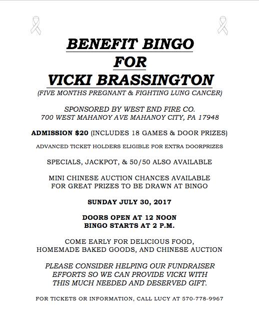 7-30-2017, Benefit Bingo for Vicki Brassington, at West End Fire Company, Mahanoy City