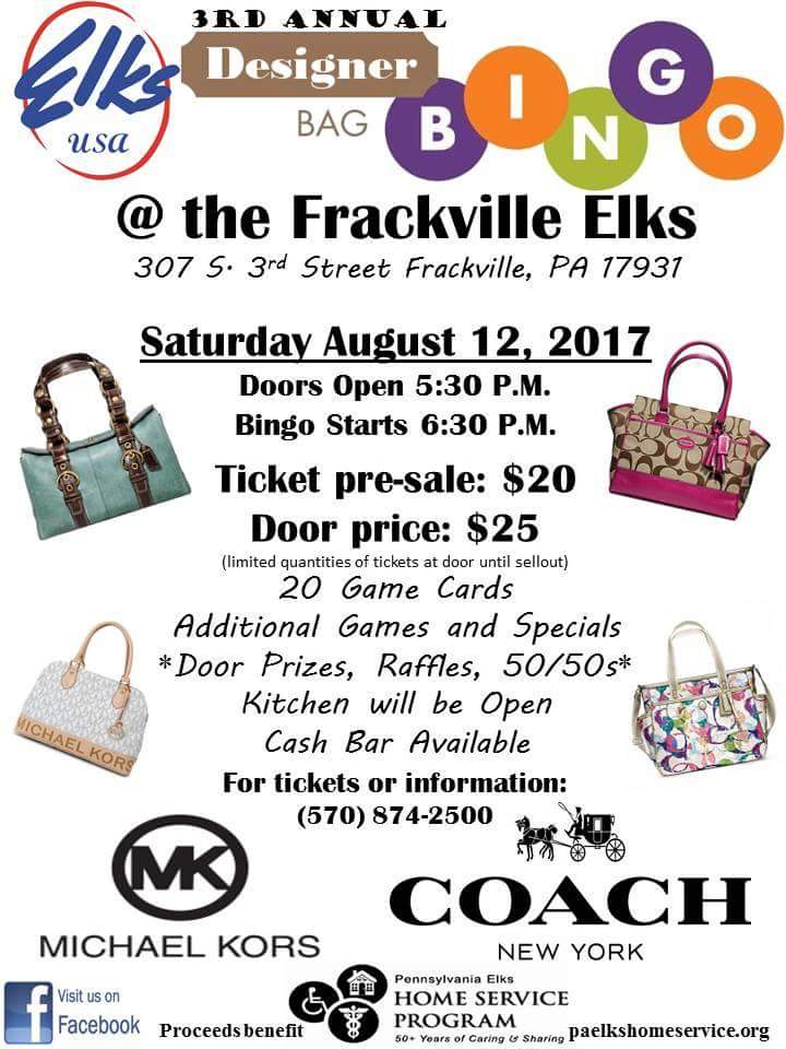 8-12-2017, Designer Bag Bingo, at Frackville Elks Lodge, Frackville