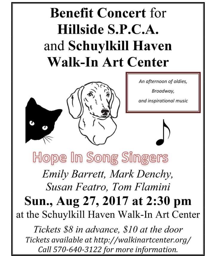 8-27-2017, Hope In Song Singers, benefits SPCA, at Walk In Art Center, Schuylkill Haven