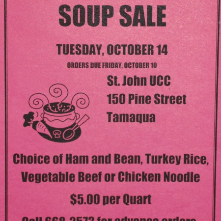 HOMEMADE SOUP SALE TUESDAY AT ST. JOHN’S U.C.C. IN TAMAQUA