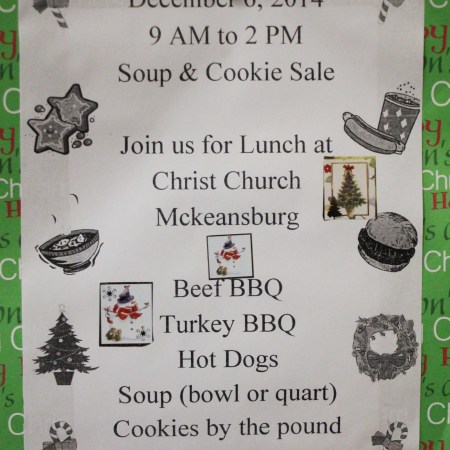 SOUP AND COOKIE SALE SATURDAY AT CHRIST CHURCH OF MCKEANSBURG