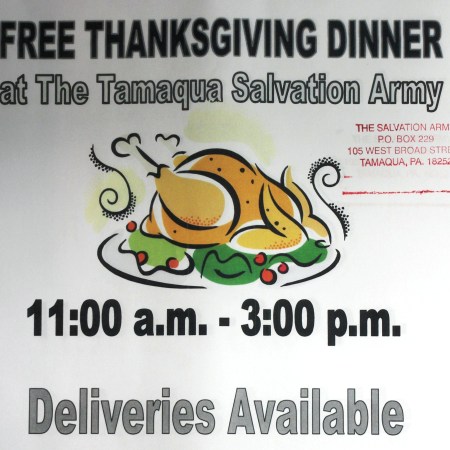 TAMAQUA SALVATION ARMY ANNOUNCES REGISTRATION DATES FOR THANKSGIVING AND CHRISTMAS ASSISTANCE; (October 20, 21, & 22, 2015)