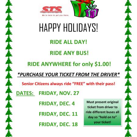 SCHUYLKILL TRANSPORTATION SYSTEM OFFERING $1 HOLIDAY BUS RIDES ON FRIDAYS