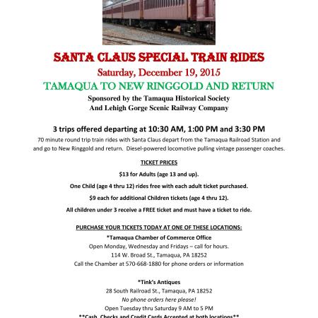 SANTA CLAUS TRAIN RIDES SCHEDULED DECEMBER 19, 2015 IN TAMAQUA