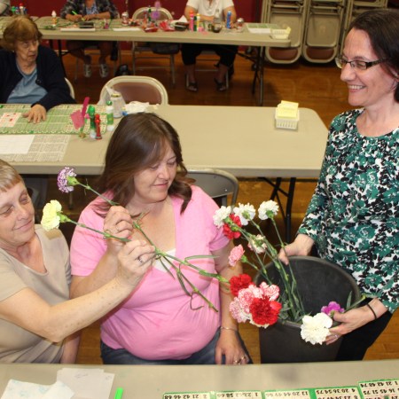 MOTHERS GIVEN FLOWERS DURING FRIDAY BINGO AT ST. JEROME SCHOOL IN TAMAQUA