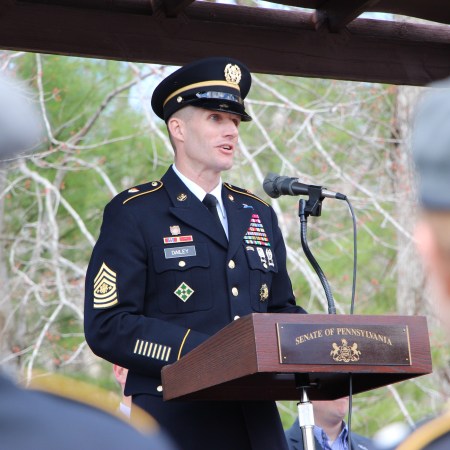 SGT. MAJOR OF THE ARMY (A PALMERTON NATIVE) SPEAKS DURING SAFETY DAY AT MAUCH CHUNK LAKE STATE PARK
