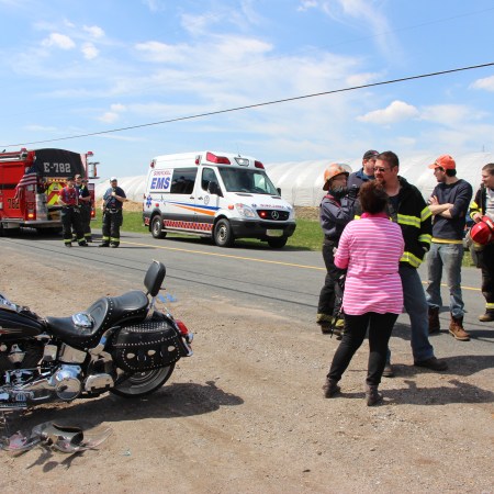 HUSBAND, WIFE INJURED DURING MOTORCYCLE ACCIDENT IN WALKER TOWNSHIP; TRIED TO AVOID DOG ON ROAD