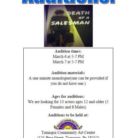 AUDITIONS FOR DEATH OF A SALEMANS AT TAMAQUA COMMUNITY ARTS CENTER (March 6 & 7, 2015)