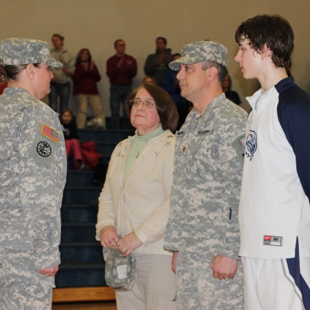 PROMOTION CEREMONY HELD FOR LOCAL SOLDIER DURING TAMAQUA BASKETBALL GAME; SURPRISES SON; (VIDEO)