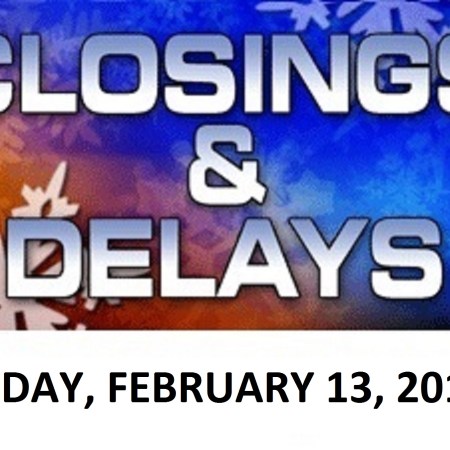LOCAL SCHOOL DELAYS OR CLOSINGS FOR FRIDAY, FEBRUARY 13, 2015