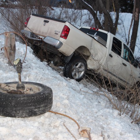 TRUCK CRASHES DOWN EMBANKMENT IN RUSH TOWNSHIP; NO ONE INJURED