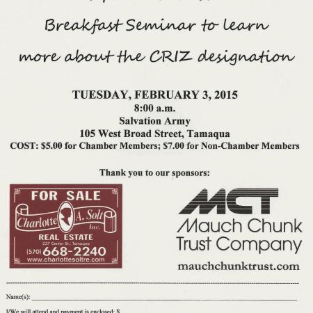 LEARN ABOUT C.R.I.Z. TUESDAY MORNING AT TAMAQUA SALVATION ARMY