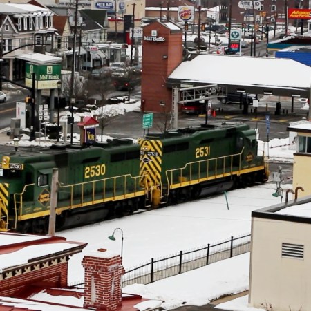 TRAIN TRAVELING SOUTH THROUGH TAMAQUA; (VIDEO)