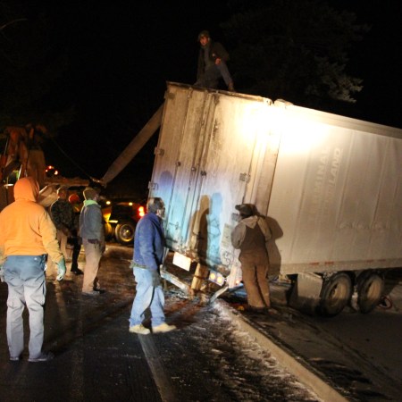 TRACTOR TRAILER STUCK IN A DITCH IN HOMETOWN