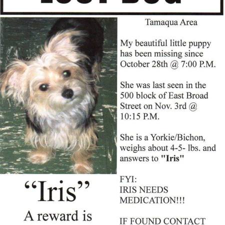 IRIS IS STILL MISSING IN TAMAQUA; MISSING SINCE OCT. 28