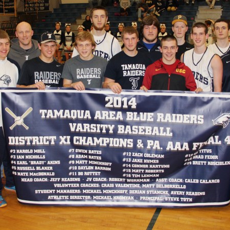 TAMAQUA 2014 RAIDER VARSITY BASEBALL TEAM PRESENTED CHAMPIONSHIP BANNER