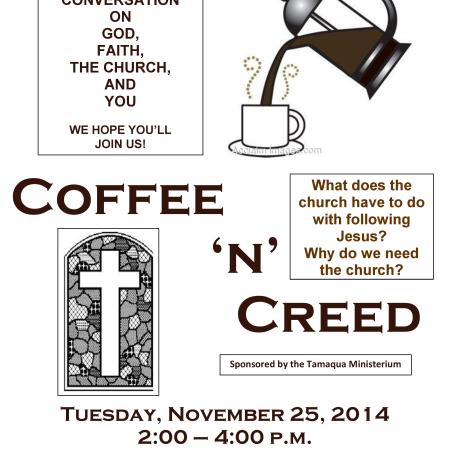 COFFEE ‘N CREED TUESDAY AT TAMAQUA TRAIN STATION; ALL ARE INVITED