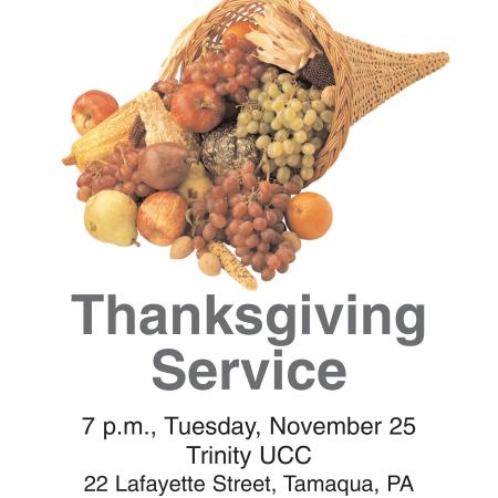 THANKSGIVING SERVICE TUESDAY AT TRINITY U.C.C. IN TAMAQUA