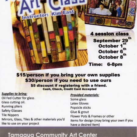 MOSAIC ART CLASSES START MONDAY AT TAMAQUA COMMUNITY ART CENTER; (4 SESSIONS)