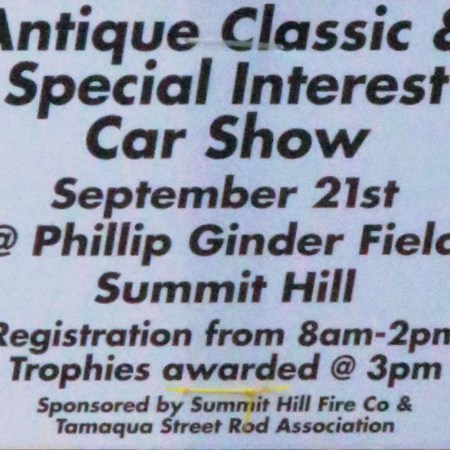 ANTIQUE, CLASSIC AND SPECIAL INTEREST CAR SHOW IN SUMMIT HILL ON SUNDAY