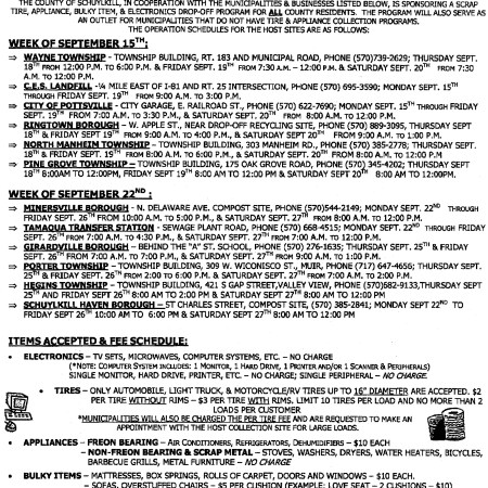 RECYCLE YOUR TELEVISIONS AND OTHER ITEMS AT THE TAMAQUA TRANSFER STATION SEPT. 22 TO SEPT. 27, 2014