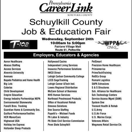 JOB AND EDUCATION FAIR WEDNESDAY AT FAIRLANE VILLAGE MALL IN POTTSVILLE; OVER 500 JOB OPENINGS