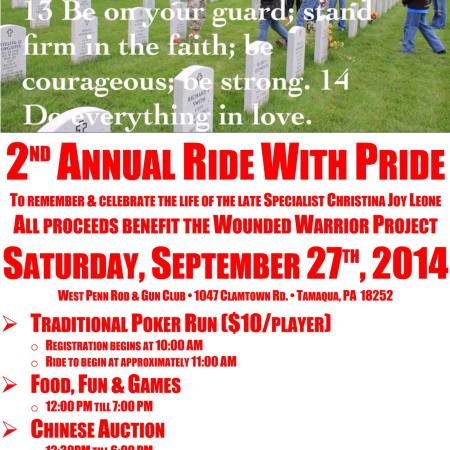 RIDE WITH PRIDE II SCHEDULED SATURDAY AT WEST PENN ROD AND GUN CLUB; INCLUDES ALL-VEHICLE POKER RUN, CHINESE AUCTION AND BAND