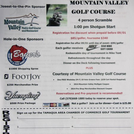 TAMAQUA CHAMBER OF COMMERCE GOLF TOURNAMENT SCHEDULED SEPT. 10, 2014
