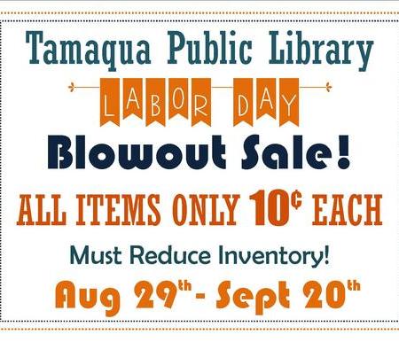 BLOWOUT BOOK SALE CONTINUES AT TAMAQUA PUBLIC LIBRARY THROUGH SEPTEMBER 20, 2014